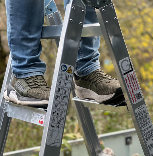 Aufstiegshilfe für Leitern der Größe 2 x 4 und 2 x 5 Stufen